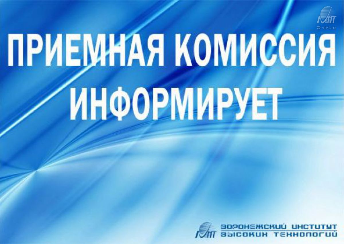 В Воронежском институте высоких технологий заканчивается прием документов на бюджетные места (бакалавриат). Еще раз напоминаем основные даты по приему на бюджет в ВИВТ в 2015 году:
